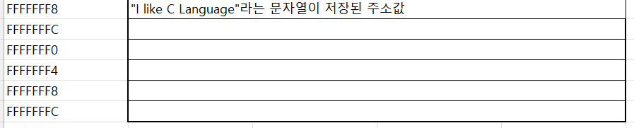 18행 : "I like C Language\n"라는 문자열의 주소를 스택에 저장한다.