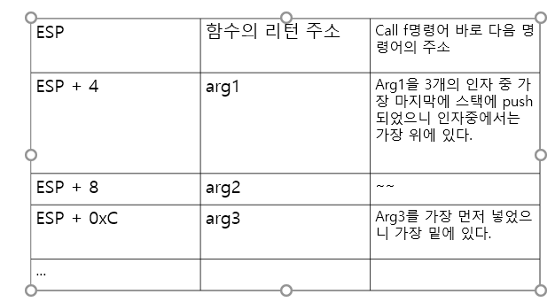 2) 함수 인자 전달(cdecl 방식의 경우)